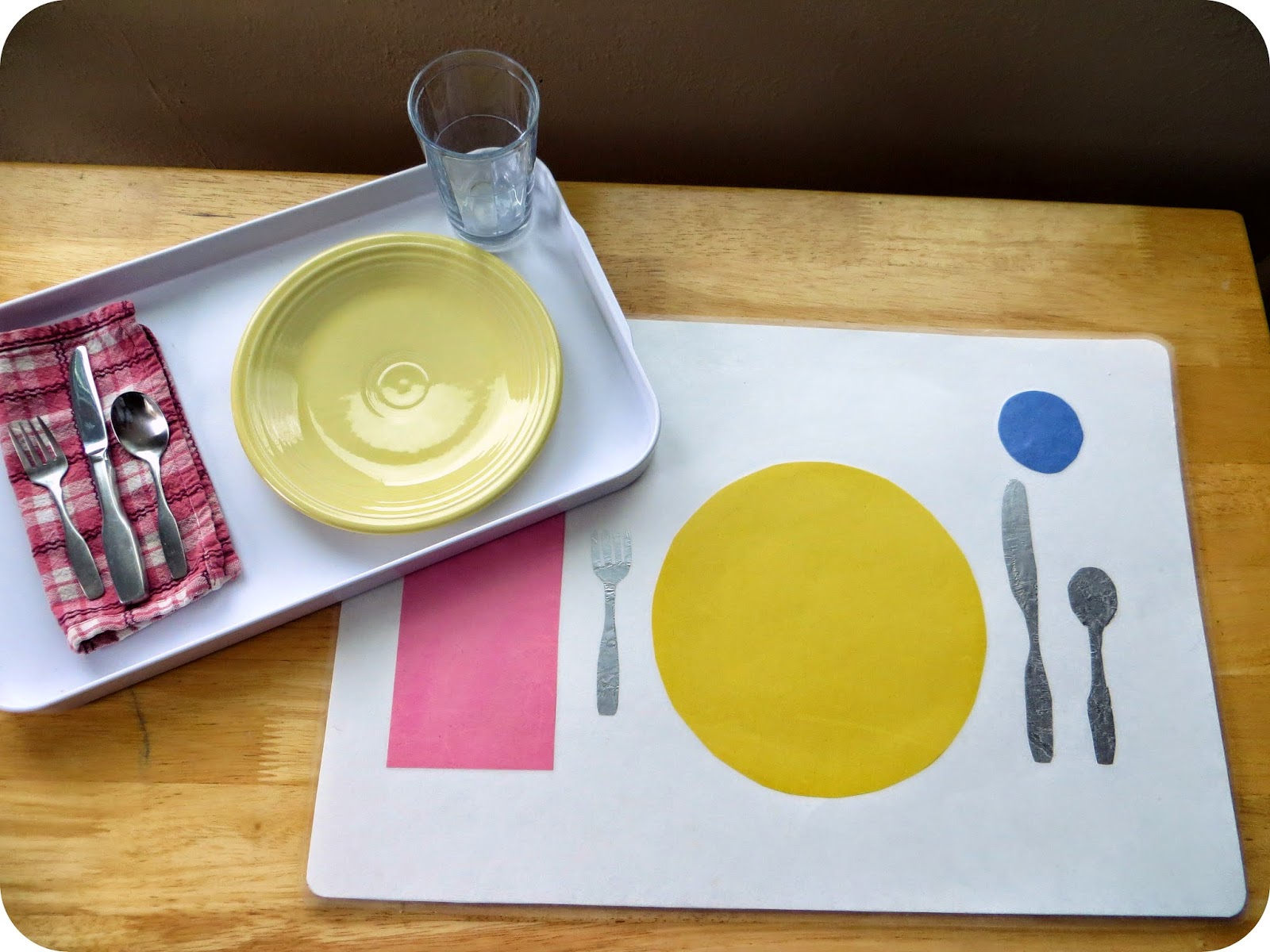 ^^matching dishes and utensils to a Montessori-inspired placemat