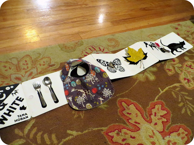 ^^ Black & White is an accordion-style book, so after matching the first side, Elise flipped it over and scavenged around the house for items to match the other side! ^^